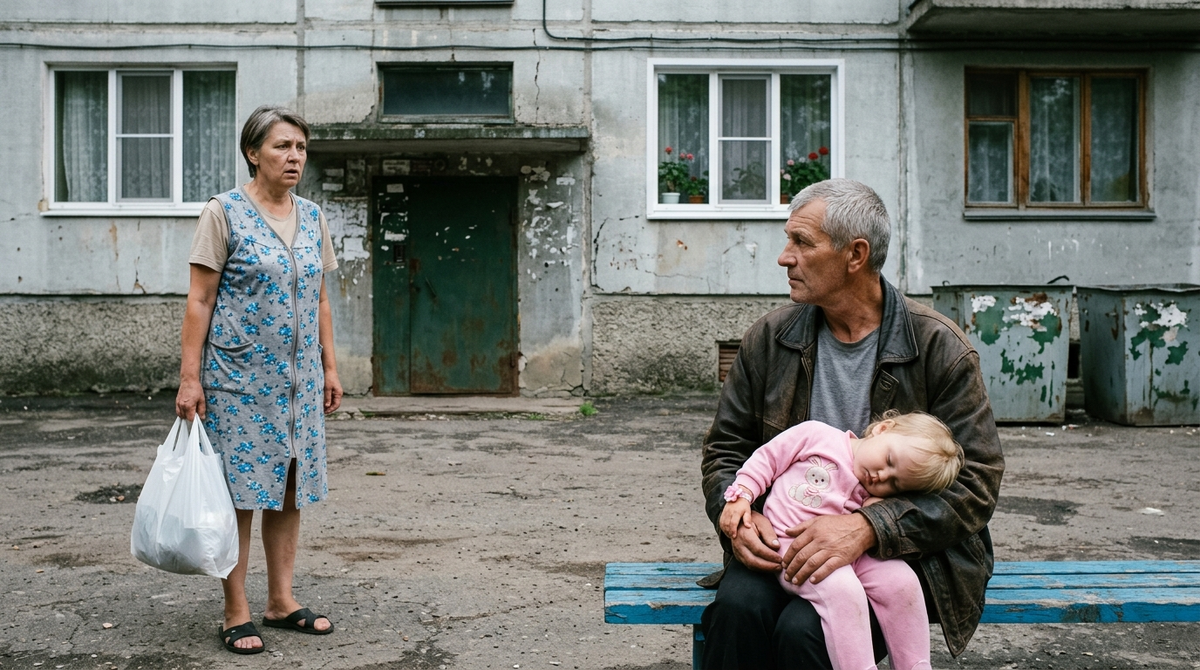 Я не ответила. Дошла до бака, швырнула мешок, крышка гулко хлопнула. Девочка на руках у Георгия вздрогнула и захныкала во сне. Он прижал её плотнее, провёл ладонью по светлым волосам. Рука у него была большая, грубая, с потемневшими ногтями. Он всю жизнь штукатурил стены, потом перешёл в ЖЭК, потом вышел на пенсию, но руки остались такие, какие не положишь ребёнку на голову без опаски. Но он положил.
