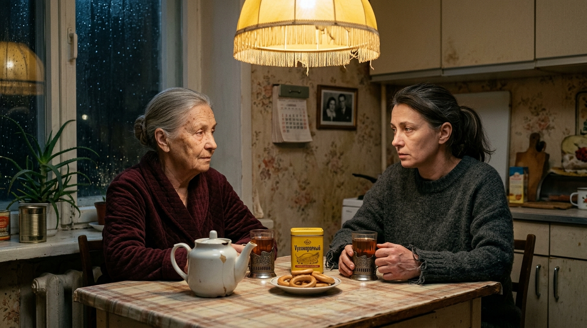 Мы снова сидели на кухне. За окном было уже темно, стекло отражало наши лица – её и моё. Над столом висел тот же жёлтый абажур с кистями по нижнему краю; одна кисть за эти годы успела оборваться.