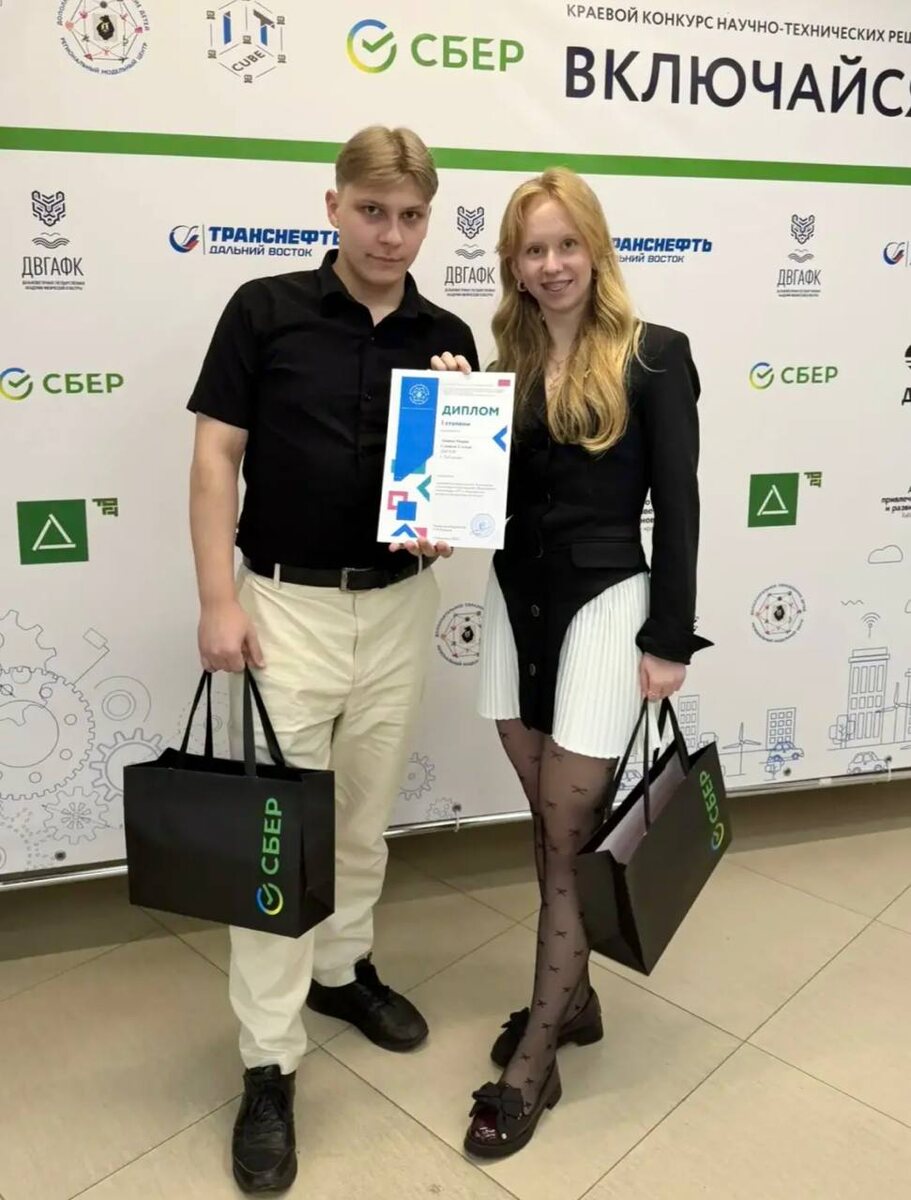 !»! Студенты Передовой инженерной школы ДВГУПС приняли участие в краевом конкурсе научно-технических и инновационных решений «Включайся!» в старшей возрастной категории. Свои работы представили: 🟢студенты 2 курса Малаханов Данил и Джуляк Софья с проектом «Крепление контейнера в полувагоне» в номинации «Транспортные технологии будущего»; 🟢студенты 4 курса Ащина Мария и Гуваков Степан с проектом «Виртуальный наставник в транспортной среде: разработка интеллектуального путеводителя по ЖД» в номинации «ИТ и образование». По итогам конкурса Мария и Степан стали победителями в своей секции «ИТ и образование», получив грамоту I степени и подарки от Сбербанка Конкурс проводился КГАОУ ДО «Центр развития творчества детей (Региональный модельный центр дополнительного образования Хабаровского края)» совместно с ПАО «Сбербанк». 🚂 Гордимся нашими студентами! ПИШ уверенно заявляет о себе в научно-технической и инновационной повестке региона!