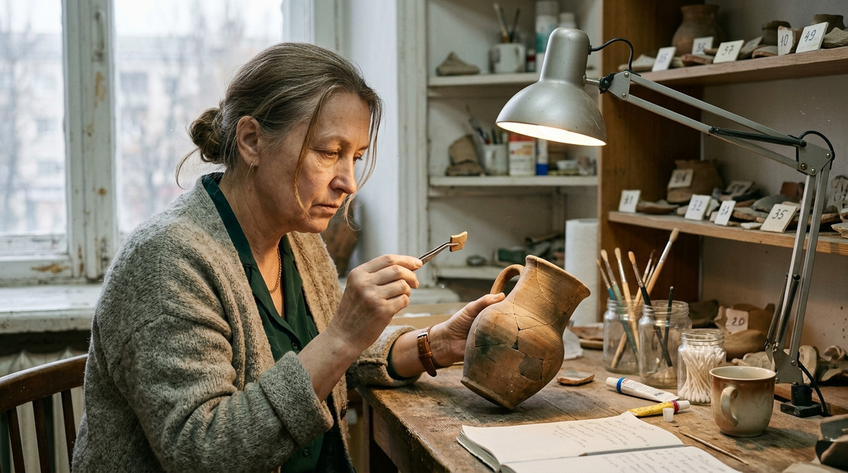 Вера подняла пинцетом крошечный фрагмент глазури и поднесла к лампе. Осколок был не больше ногтя, но без него на боку кувшина оставалась дыра, похожая на след от пули. Она наклонилась ниже. Руки уже не те, что в сорок. Телефон на краю стола завибрировал, Вера не подняла головы.