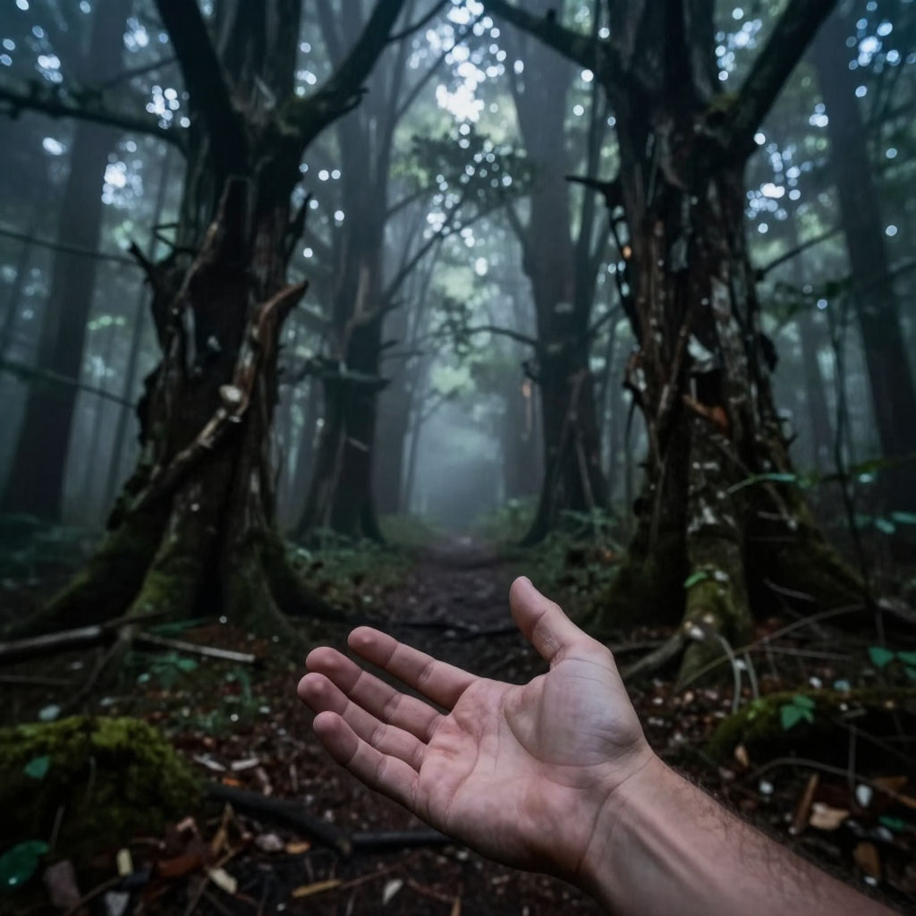 Однако тишина леса поразила меня своей глубокой первозданностью. Здесь не раздавалось ни пение птиц, ни обычный шёпот листьев под ногами, ни треск сухих веточек. Всё вокруг замерло в полном покое, позволяя моим шагам медленно продвигаться дальше внутрь, навстречу густой тьме таинственных лесных глубин. Чем глубже я проникал в лес, тем сильнее ощущал присутствие нечто странного и необъяснимого. Пространство постепенно окутывалось плотным туманом, лениво клубящимся между высокими деревьями, беззвучно стекающим по ветвям и растворяя грани реальности, превращая знакомые контуры местности в расплывчатые призраки фантазии.