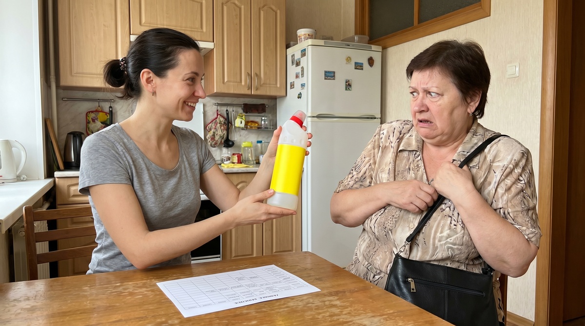 Она выставила на стол пузатую бутылку с едкой химией и ядовито-желтой этикеткой.