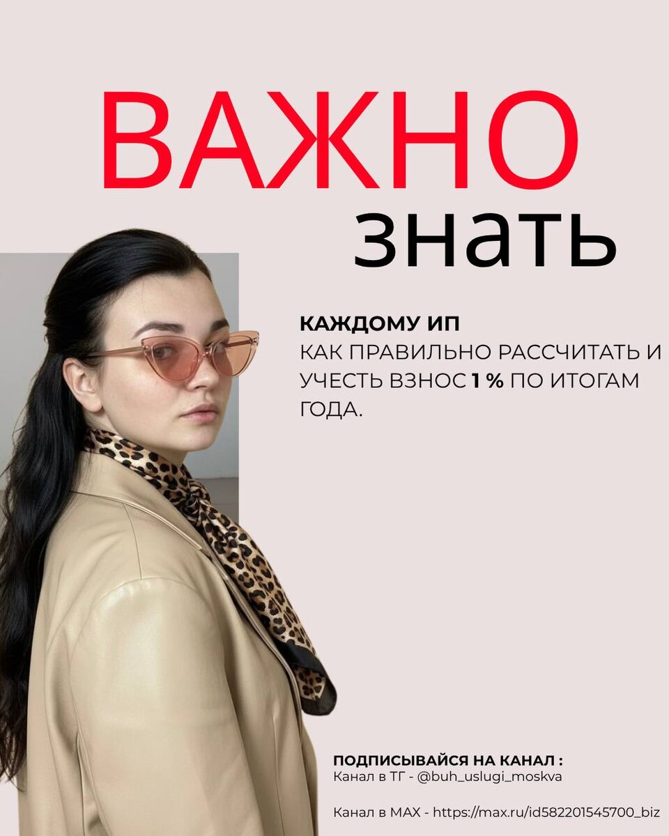 ? Доп. взнос 1 % — это часть страховых взносов ИП за себя. Он платится, если доход предпринимателя за год превысил 300 000 рублей 😊 Срок уплаты — до 1 июля следующего года. Сумма дополнительного взноса не может превышать установленный лимит: в 2026 году — 321 818 ₽. То есть даже при очень высоких доходах больше этой суммы платить не придётся. Важные нюансы расчёта: ➡️ Для УСН «доходы»: берётся весь доход без учёта расходов. В расчёт включаются все поступления, которые по правилам УСН считаются доходом (за вычетом НДС — если ИП является его плательщиком). ➡️ Для УСН «доходы минус расходы»: в базу для расчёта 1 % взноса берётся разница между доходами и расходами. Важно: при расчёте базы для доп. взноса в 1 % нельзя включать в расходы: страховые взносы ИП за себя. ➡️ Для ПСН (патент): в расчёт идёт потенциально возможный доход (ПВД) по патенту — то есть сумма, указанная в самом патенте (строка 010), а не фактическая выручка. 📌Даже если вы заработали больше или меньше этой суммы, дл