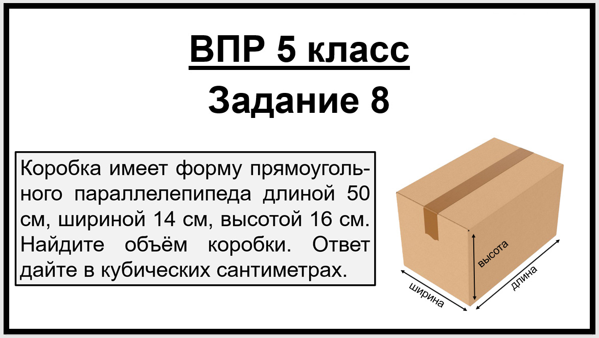 Разбор задания ВПР по математике 5 класс: как найти объём коробки, если известны длина, ширина и высота. 📌 Условие задачи: