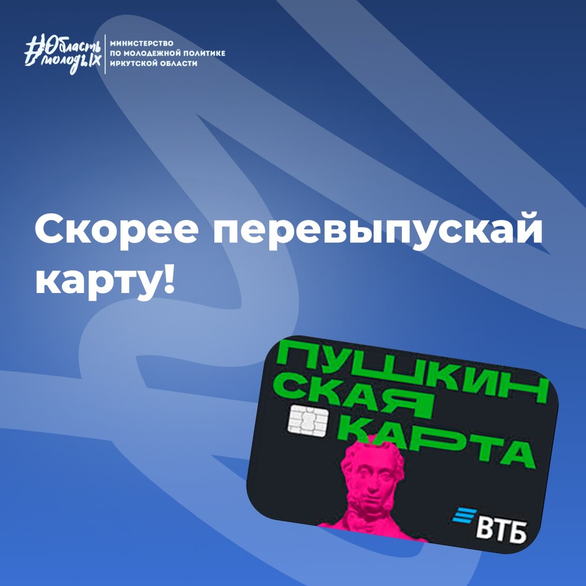 ! С 2026 года оператором «Пушкинской карты» стал ВТБ. Чтобы и дальше тратить баланс и прекрасно проводить время, карту нужно перевыпустить. 📎 Это быстро и легко. Ты можешь сделать это в приложениях «Госуслуги Культура», «Почта Банк», «ВТБ Онлайн» или офисах банка. Напоминаем условия, картой можно пользоваться, если тебе от 14 до 22 лет, а на счету снова 5000 ₽ (из них 2000 ₽ можно потратить на билеты в кино). Перевыпускай карту и продолжай наслаждаться культурой с комфортом!😉 ▫️ Подписывайтесь на Область Молодых в Max | Подписывайтесь на наши социальные сети