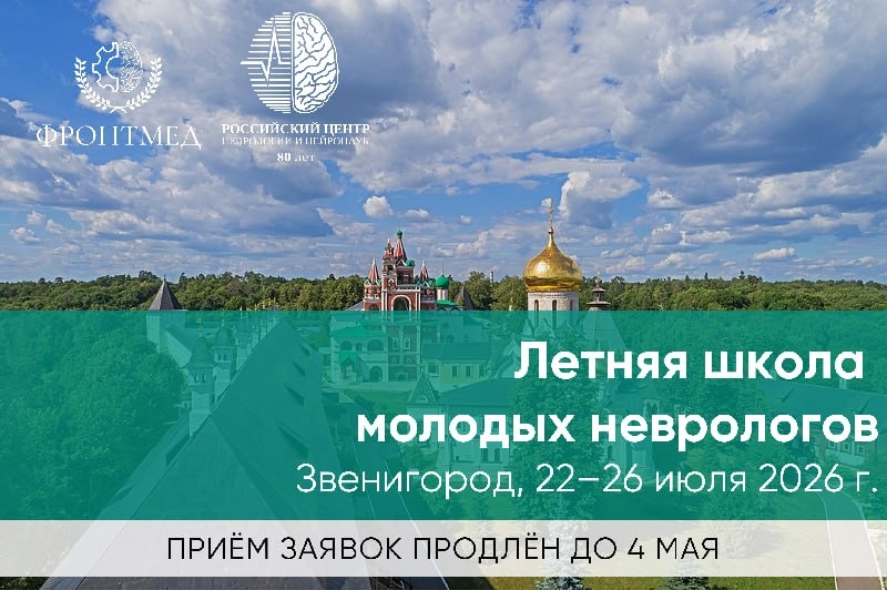 до 4 мая! Напомним, что в Школе могут принять участие ординаторы и аспиранты-неврологи и начинающие врачи-неврологи (первые 3 года работы). Вас ждет очень интенсивная образовательная программа, включающая лекции и мастер-классы от врачей и преподавателей Российского центра неврологии и нейронаук. Школа проводится при поддержке ФРОНТМЕД. Темы ЛШМН–2026: - Новые возможности лечения нейродегенеративных и наследственных заболеваний - Атипичная демиелинизация - Отек мозга - Синкопе - Функциональные расстройства движений - Аутоиммунные энцефалиты - Нарушения сна и многое другое. Школа пройдёт в Звенигороде с 22 по 26 июля 2026 г. »Подробная информация о Школе и форма для подачи заявки – на сайте. 🤩 Российский центр неврологии и нейронаук ▫️Подписаться ▫️Поддержать канал