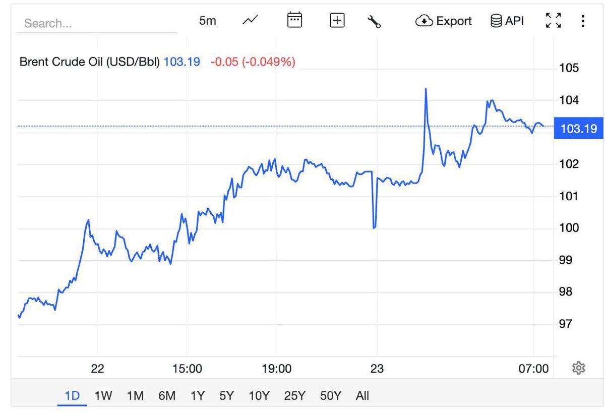 Цены на нефть снова растут: марка Brent приблизилась к 105 долларам за баррель.