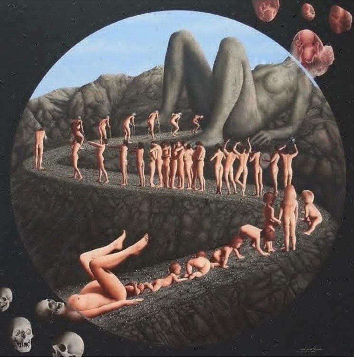 ΡΠ΄ΠΎΠΆΠ½ΠΈΠΊ Π Π°ΠΉΠΌΠΎΠ½ ΠΡΠΉΠ΅ (Raymond Douillet), ΡΠΎΠ΄ΠΈΠ²ΡΠΈΠΉΡΡ Π² 1947 Π³ΠΎΠ΄Ρ, ΠΈΠ·Π²Π΅ΡΡΠ΅Π½ ΡΠ²ΠΎΠΈΠΌ ΠΏΡΠΈΡΡΠ°Π»ΡΠ½ΡΠΌ Π²Π½ΠΈΠΌΠ°Π½ΠΈΠ΅ΠΌ ΠΊ Π΄Π΅ΡΠ°Π»ΡΠΌ ΠΈ Π»ΡΠ±ΠΎΠ²ΡΡ ΠΊ ΡΠΈΠΌΠ²ΠΎΠ»ΠΈΠ·ΠΌΡ. ΠΠΎ ΠΎΠ΄Π½Π° Π΅Π³ΠΎ ΡΠ°Π±ΠΎΡΠ° - Β«Π‘ΠΊΠΎΡΠΎΡΠ΅ΡΠ½ΡΠΉ ΠΆΠΈΠ·Π½Π΅Π½Π½ΡΠΉ ΡΠΈΠΊΠ»Β» (ΠΎΡΠΈΠ³ΠΈΠ½Π°Π»ΡΠ½ΠΎΠ΅ Π½Π°Π·Π²Π°Π½ΠΈΠ΅ Β«A Short Tour and FarewellΒ») - Π²ΡΠ·Π²Π°Π»Π° Π½Π°ΡΡΠΎΡΡΠΈΠΉ ΡΡΠΎΡΠΌ ΡΠΌΠΎΡΠΈΠΉ ΠΈ Π²ΠΎΠΏΡΠΎΡΠΎΠ². ΠΠ° ΠΏΠ΅ΡΠ²ΡΠΉ Π²Π·Π³Π»ΡΠ΄ ΠΊΠΎΠΌΠΏΠΎΠ·ΠΈΡΠΈΡ ΠΊΠ°ΠΆΠ΅ΡΡΡ ΠΏΡΠΎΡΡΠΎΠΉ ΠΈ ΠΏΠΎΠ½ΡΡΠ½ΠΎΠΉ. ΠΠΎ ΡΠ΅ΠΌ Π΄ΠΎΠ»ΡΡΠ΅ Π½Π° Π½Π΅Π΅ ΡΠΌΠΎΡΡΠΈΡΡ, ΡΠ΅ΠΌ ΡΠΈΠ»ΡΠ½Π΅Π΅ Π·Π°Ρ