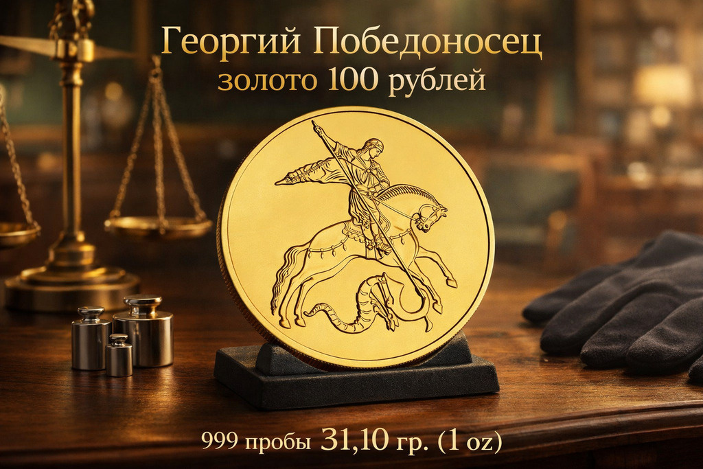 ) «Георгий Победоносец» — одна из самых известных и узнаваемых инвестиционных монет в России, выпуск которой продолжается и в 2025 году. Образ всадника, поражающего копьем змея, исторически символизирует торжество добра, мужество и победу. Благодаря своему статусу и высокому содержанию драгоценного металла (полной половине тройской унции), эта монета традиционно рассматривается как классический физический актив для диверсификации портфеля. Кроме того, она часто становится статусным, вневременным подарком для партнеров по бизнесу или близких людей. Искусство и дизайн Реверс монеты украшает динамичное рельефное изображение Святого Георгия. Над созданием этой стороны работал народный художник России А.В. Бакланов. На аверсе расположен детализированный Государственный герб Российской Федерации. Здесь же указаны все ключевые атрибуты: обозначение драгоценного металла, проба, содержание чистого золота и товарный знак Московского монетного двора (ММД). ⚖️ Характеристики монеты: • Металл