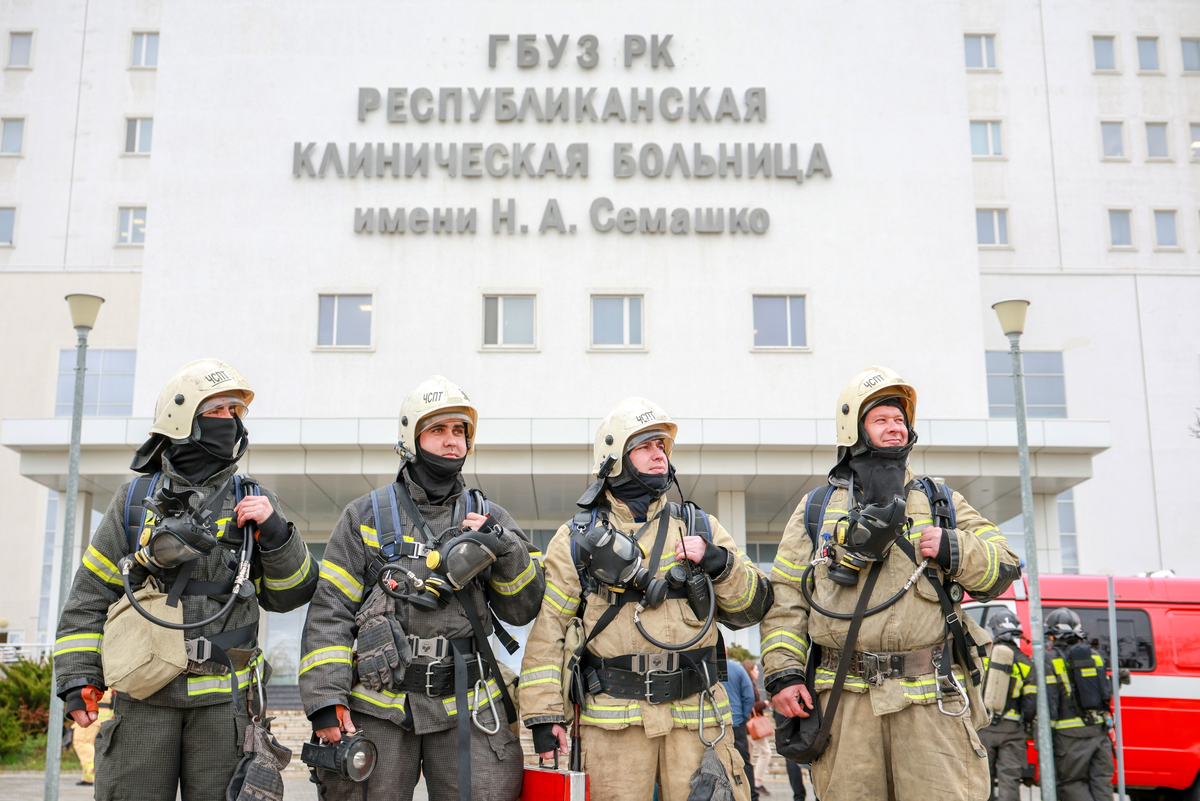 Вопрос обеспечения пожарной безопасности в медицинских учреждениях является одним из приоритетных для Главного управления МЧС России по Республике Крым. На постоянной основе сотрудники МЧС России проводят пожарно-тактические учения, направленные на повышение готовности медицинского персонала и руководителей к действиям в условиях ЧС. Так, в Республиканской клинической больнице имени Семашко прошли учения по отработке действий при пожаре 4-го ранга вызова. Согласно легенде, в результате короткого замыкания в аккумуляторном отделении электрощитовой на 3 этаже возникло возгорание площадью 22 квадратных метра. Администрация больницы оперативно сообщила о происшествии в единый пункт связи, а медицинский персонал немедленно приступил к эвакуации пациентов. Первые расчеты прибыли в установленное время, провели боевое развертывание и приступили к тушению. Газодымозащитники в ходе разведки обнаружили пострадавших, которые не смогли покинуть здание самостоятельно, и с помощью самоспасателей эвак