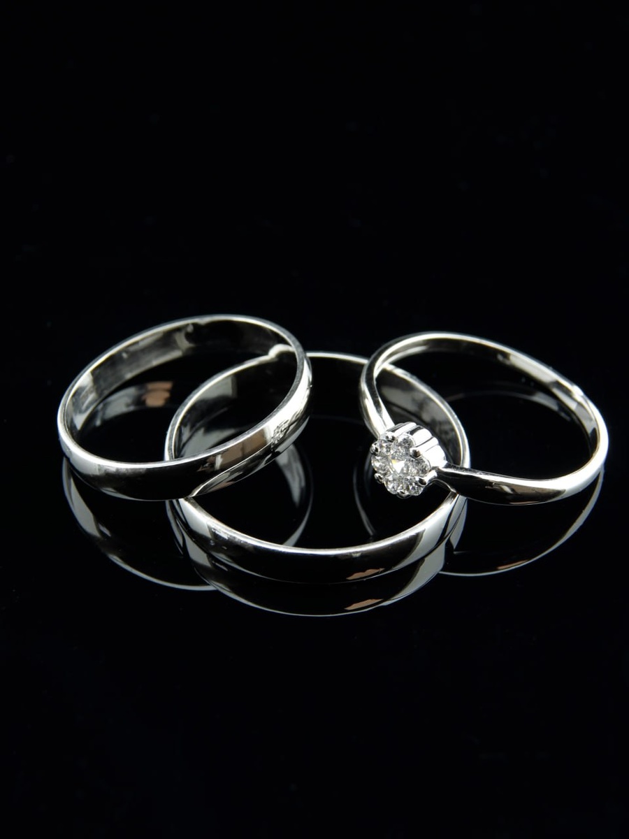 На фото — пример реставрации комплекта обручальных и помолвочного колец