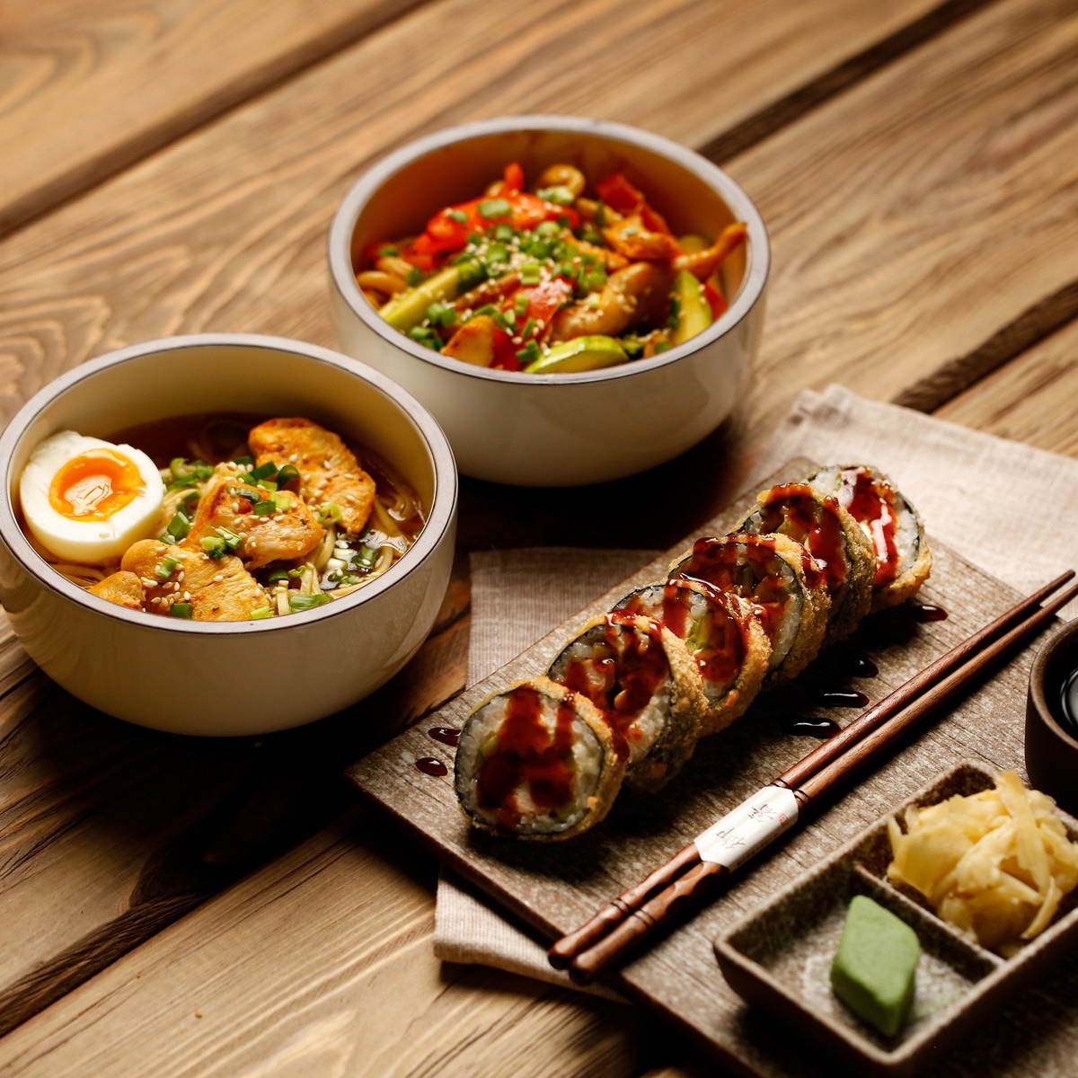! Бизнес-ланч за 600₽ вместо 980₽ С 12:00 до 16:00 С понедельника по четверг ✅ Комбо 1, 950 гр 🍣 Ролл Кранчи с курицей (рис, нори, сливочный сыр, огурец, копченая курица, темпурный кляр, сухари панировочные, соус Унаги) 🥡 Вок с курицей (яичная лапша, куриное филе, перец болгарский, цукини, соус Терияки, кунжут, зеленый лук) 🍜 Суп Рамен (бульон Мисо Широ, яичная лапша, куриное филе, яйцо, кунжут, зеленый лук ✅ Комбо 2, 950 гр 🍣 Ролл Кранчи с крабом (рис, нори, сливочный сыр, огурец, снежный краб, темпурный кляр, сухари панировочные, соус Унаги) 🥡 Вок с рисом и курицей (отварной рис, куриное филе, перец болгарский, цукини, соус Терияки, кунжут, зеленый лук) 🍜 Суп Рамен (бульон Мисо Широ, яичная лапша, куриное филе, яйцо, кунжут, зеленый лук. Заказать можно на сайте двалосося.рф