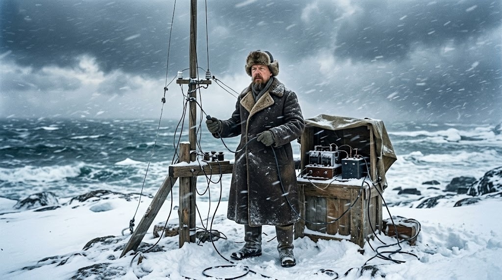 В январе на остров привезли господ. Сначала мы приняли их за следственную комиссию, те всегда приезжают по первому неудобству. Но эти везли ящики в опилках, мотки проволоки и тот самый шест. Старший у них был вольный, не флотский: невысокий, в пенсне, борода клином. Его звали Александр Степанович Попов — тот самый, что в Минном классе в Кронштадте чему-то учил молодых офицеров. С ним приехал лейтенант Залемский, а из Котки, с финского берега, работала другая такая же команда. Между Гогландом и Коткой сорок с лишним вёрст по льду и воде. И вот между этими двумя шестами, по рассказам, должна была бежать невидимая нить связи.