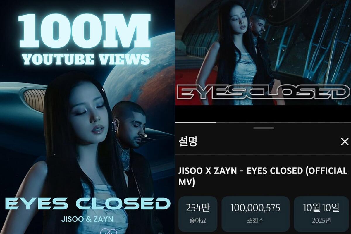 Совместный сингл Джису из группы BLACKPINK и британского певца Зейна (ZAYN) под названием «Eyes Closed» преодолел отметку в 100 миллионов просмотров на YouTube. Официальный клип достиг этого важного рубежа спустя полгода после премьеры, состоявшейся 10 октября 2025 года. Этот успех закрепил позиции Джису как глобальной сольной исполнительницы. Ранее благодаря этой коллаборации участница BLACKPINK впервые в своей сольной карьере вошла в американский чарт Billboard Hot 100, заняв 72-е место. Таким образом, BLACKPINK стали первой женской K-pop группой в истории, все участницы которой отметились в главном сингловом чарте США сольными проектами. Слухи о сотрудничестве артистов появились летом 2025 года, когда Зейн посетил концерт BLACKPINK в Нью-Йорке. Позже стало известно, что артисты записали чувственную синт-поп балладу о сложности новых отношений после болезненного прошлого опыта. Продюсерами трека выступили The Monsters & Strangerz, Isaiah Tejada и Alex Hope. Помимо успехов в США, песн