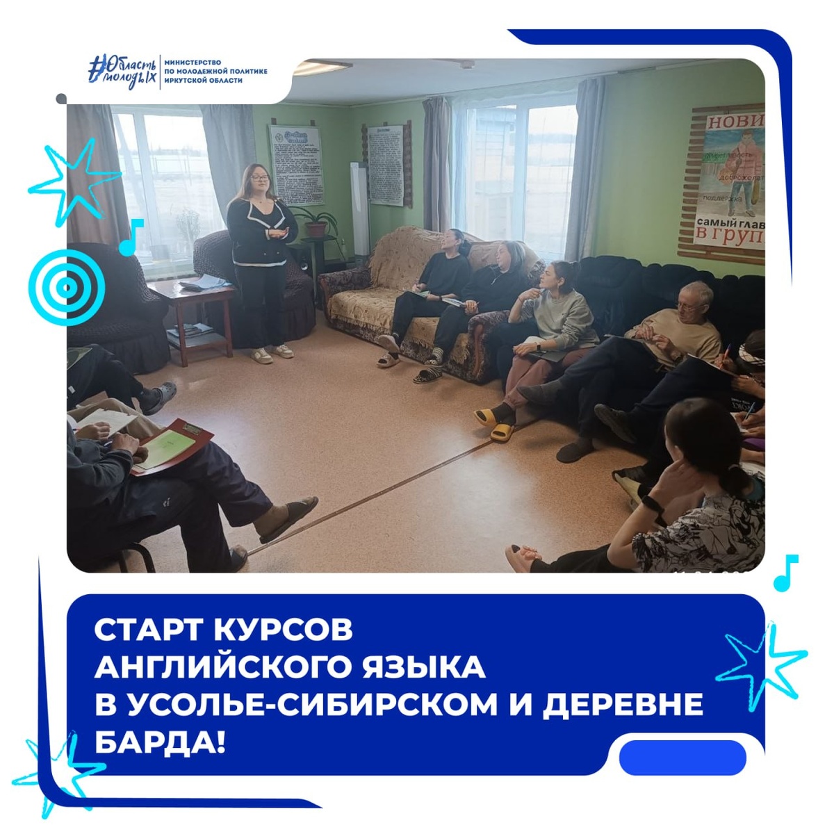 "!! Теперь учить английский стало ещё доступнее! Начались курсы сразу на двух площадках, в городе Усолье-Сибирское и в деревне Барда. Участники с интересом приступили к занятиям. 🔹 Программа дает базовые знания английского языка с нуля или для тех, кто хочет освежить навыки. Также участники получат помощь в социализации, где полученные знания помогут быстрее адаптироваться после завершения программы реабилитации, чувствовать себя увереннее в общении и повседневной жизни. Английский открывает двери и мы рады, что теперь наши молодые люди смогут сделать ещё один шаг к новой, уверенной жизни. ▫️ Подписывайтесь на Область Молодых в Max | Подписывайтесь на наши социальные сети