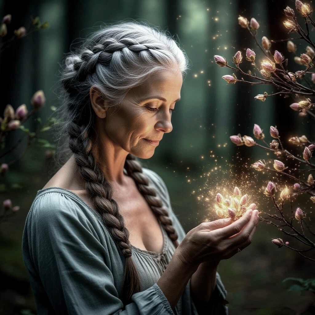Прекрасное утро: тёплый влажный ветер развевает волосы, запах молодой травы и листвы пьянит. Пение птиц наполняет радостью сердце. Пьяска медленно шла по лесу, наблюдая, любуясь, никуда не спеша. Иногда, её сердце настолько было охвачено ликованием весны, что она забывала, ненадолго, о чёрной тени хаоса, нависшей над миром. Захваченная сбором даров леса, ведьма полностью ушла в собственные мысли и ощущения. Она заготавливала то, что могла дать лишь весна- нераскрывшиеся почки одних деревьев, и молодую листву других. Кладезь микроэлементов, то, что так необходимо телам для восстановления. Скоро по деревням пройдёт слух, что целительница вернулась, и к ней снова потянется вереница ищущих помощи. И снова она будет помогать. Кому настоем и отваром, кому магией и силой стихий. Чувство присутствия заставили Пьяску замереть и прислушаться. Кто может быть здесь в такое ранее время? Ведьма застыла, а потом улыбнулась и заговорила первая: -Я-то уже хотела удивиться: кого так рано занесло в эти м