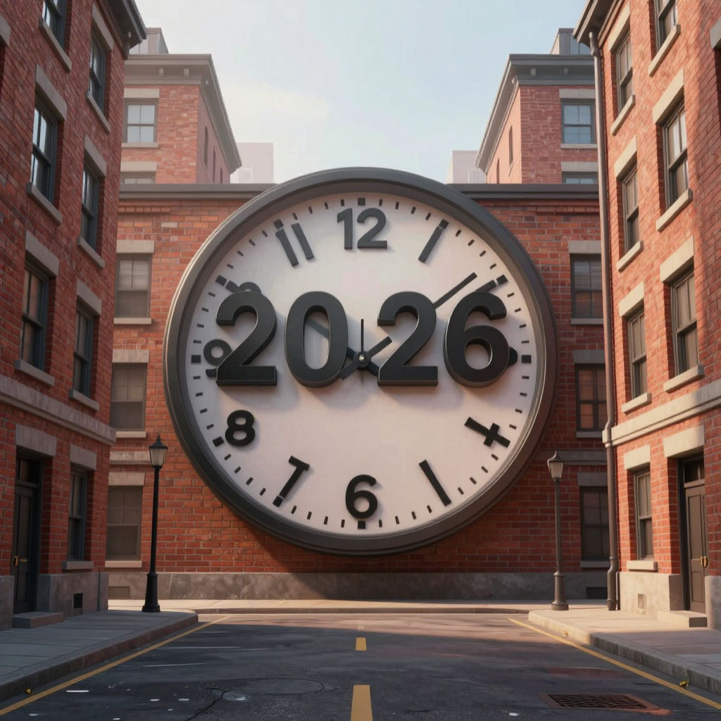 На одном из домов, прямо над нами, висели огромные часы. Но это были не обычные часы. Вместо привычных цифр, на циферблате красовалась дата. И я, с абсолютной ясностью, увидела: 2026 год.