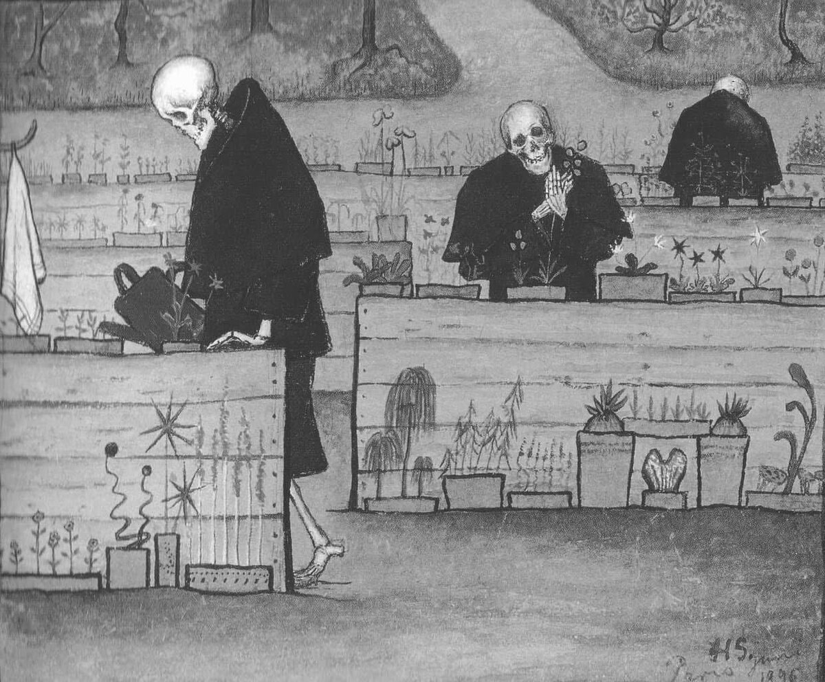 : «Между секундой и секундой пролегает граница, которая не во времени — она лишь подразумевается Это такие ячейки, как на сетях, — слышу я горбуна — Но сосчитать все ячейки — это еще не время, и все же мы отсчитываем их — одна, другая, третья, четвертая… Но если мы живем на такой границе и забываем и минуты, и секунды и ничего больше не знаем — значит, мы умерли и живем смертью Вам отпущено пятьдесят лет жизни, школа крадет десять; в итоге — сорок Сон пожирает двадцать: в итоге — двадцать На хлопоты уходит десять — в итоге десять Пять лет идет дождь — остается пять Из этих пяти лет четыре вас гложет страх перед завтрашним днем; итак, живете вы один год — в лучшем случае! Почему же вы не хотите умереть?! Смерть прекрасна Там покой, вечный покой И никаких страхов перед завтрашним днем Там вечное безмолвное настоящее, которого вы никогда не знали: там нет ни прошлого, ни будущего Там простерлось вечное безмолвное настоящее, которого вы никогда не знали! Это тайные ячейки между секундой и