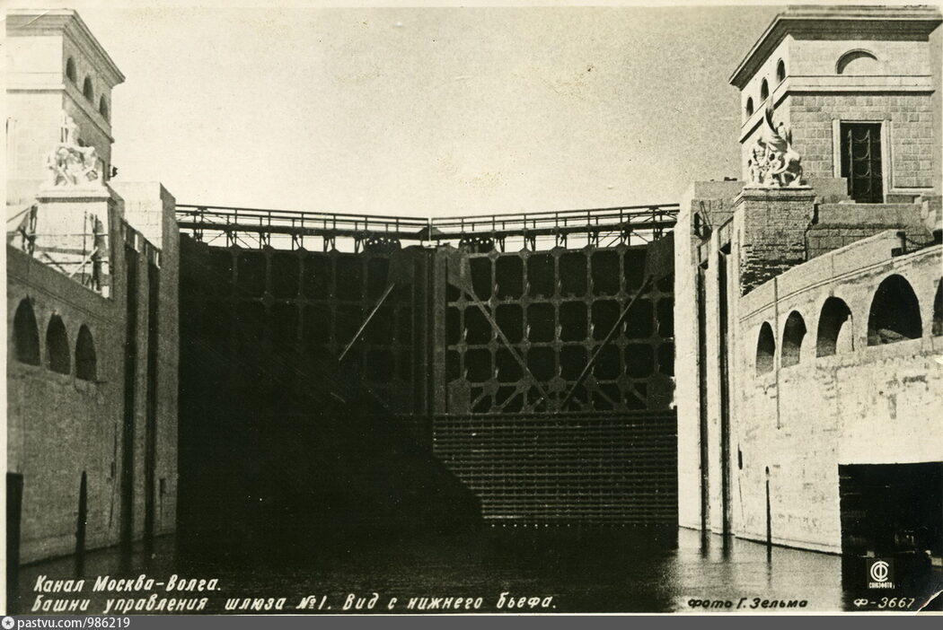 Башни управления шлюза №1. Вид с нижнего бьефа https://fastpic.ru/fullview/86/2019/1017/bbd8c4b629467a748e64f4a5610f25cf.jpg.html 📍 Шлюзовой переулок, Дубна, Россия 📅 Примерно 1935 год 📱 Мы в ВК #ИсторияФлота #PastVu