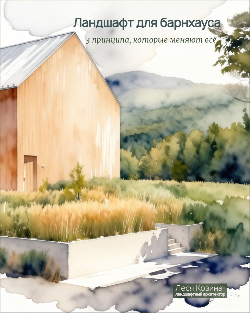 Барнхаус это амбар. Сельская жизнь, где есть место небрежности. Отсюда и требования к ландшафту: крупные мазки, крупные детали.