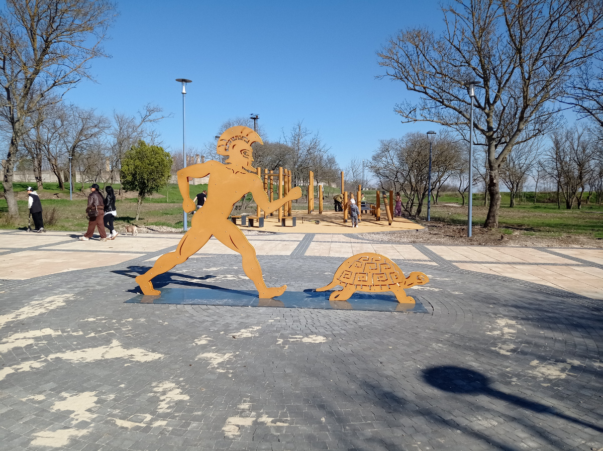 Сейчас его полностью переделали и превратили в парк Ахилла…если кто не знает, то Ахилл с точки зрения керчан и руководства города – уроженец города Керчи, родился и вырос на районе Войкова (в античности назывался городище Мирмекий) …поэтому в парке есть Троянский конь… и самый медленный в мире марафонец, который не может догнать даже черепаху!!!