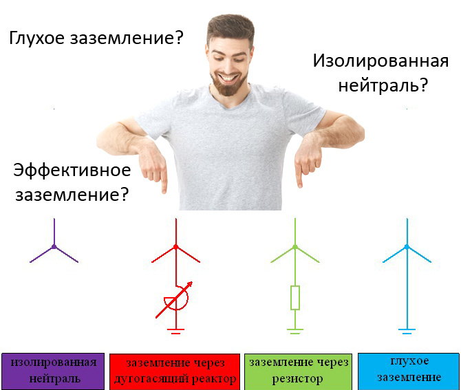 - эффективное заземление нейтрали (высокое напряжение больше 35 кВ).