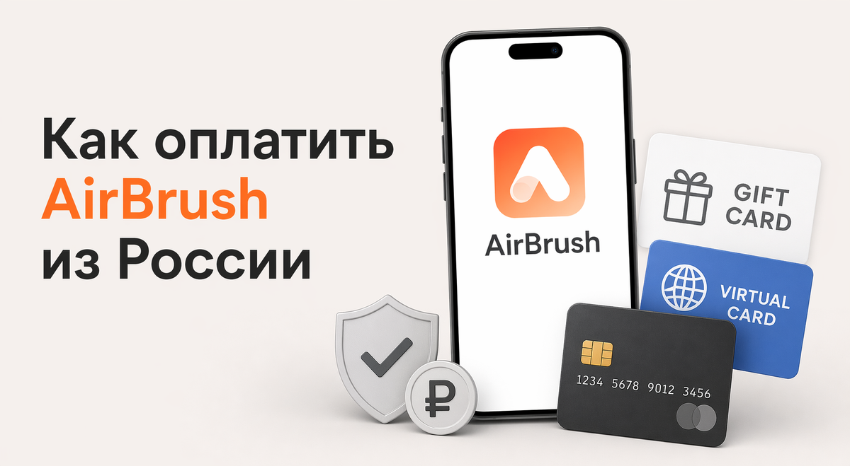 К 2026 году появились более простые решения. Сегодня подписку AirBrush можно оплатить дистанционно — с помощью подарочных карт, виртуальных карт или специальных сервисов-посредников.