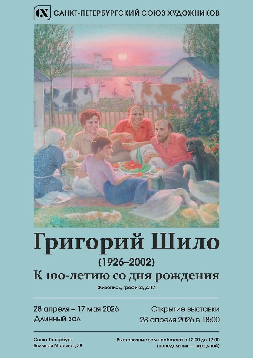Григория Алексеевича Шило (1926–2002) 28 апреля – 17 мая 2026 года Участник Великой Отечественной войны. Выпускник Художественно-промышленного училища им. В. И. Мухиной. Художник-монументалист и декоратор, живописец. Одной из первых крупных работ Григория Шило стало керамическое панно для станции Ленинградского метро «Электросила» (1961). Впоследствии Григорий Алексеевич участвовал в оформлении других станций метрополитена. До выхода на пенсию работал, как большинство его коллег, в Комбинате декоративно-прикладного искусства и скульптуры Ленинградского отделения Художественного фонда. Среди заказных работ фонда — светильники, металлические решетки, декоративные элементы из металла и стекла (Театр марионеток им. Е.С. Деммени, ресторан «Невский», Дом цветов и др.). В перерывах между крупными объектами «для души» он занимался живописью, которую видели практически только друзья и гости его мастерской. На выставке, посвященной юбилею Г. А. Шило, представлены декоративно-прикладные работ