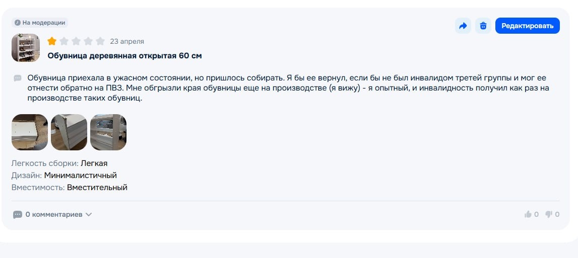 Месть - блюдо которое подается холодным. 😡 Надеюсь все кто захотят купить эту ебаную обувницу - увидят мой отзыв. 🤬