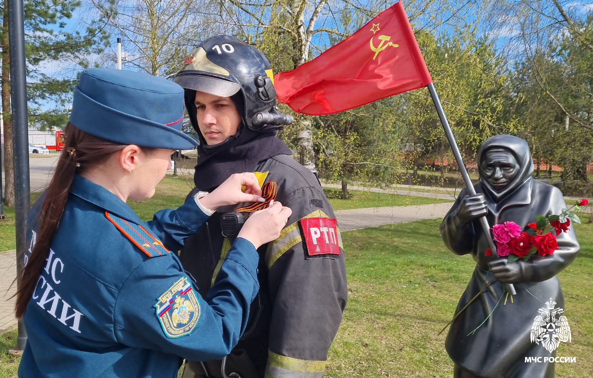 Сoтрудники МЧС Роccии присoединились к aкции «Георгиевская ленточка»