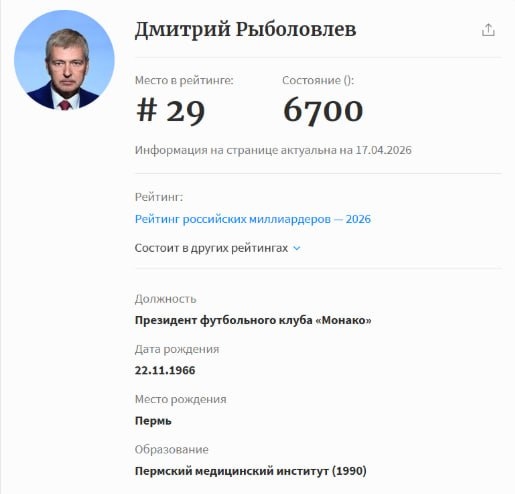 В свежий рейтинг вошли два бизнесмена, чьи активы тесно связаны с Прикамьем. Издание опубликовало список из 156 фамилий 23 апреля. В верхней части списка пермяков — бывший владелец «Уралкалия» Дмитрий Рыболовлев. Он занял 29-е место, его состояние оценено в 6,7 млрд долларов. Следом идет президент АО «Эр-Телеком Холдинг» Андрей Кузяев — 126-е место с состоянием 1,3 млрд долларов. Их капиталы за год заметно выросли: только Рыболовлев прибавил по 300 млн долларов, а Кузяев — 200 млн. ❤️ Подписаться | Предложить новость | Дать «буст» | Мы в MAX