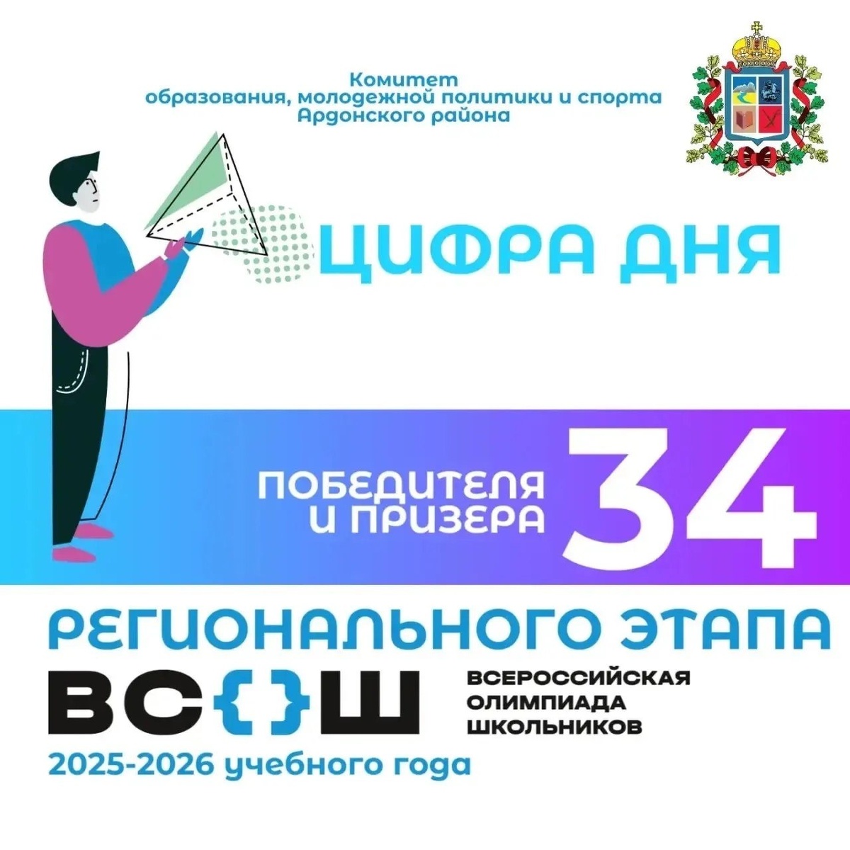 📊 ЦИФРА ДНЯ: 34 победителя и призёра Регионального этапа ВсОШ в 2025/26 учебном году