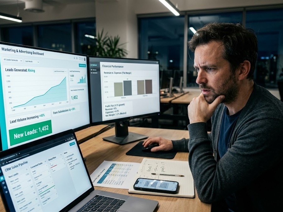 На практике часто происходит наоборот: заявок становится больше, а прибыль не растёт. Иногда даже падает. Проблема не в трафике. Проблема в том, что происходит после заявки. Когда поток увеличивается, система начинает трещать. Что происходит: