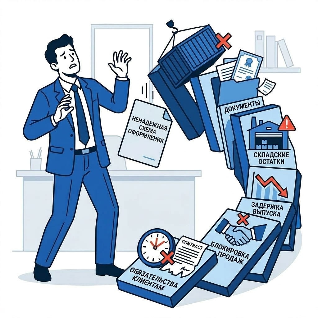 Про то, как одна проблема тянет за собой другие** Сначала это выглядит как единичный сбой. У компании есть привычная модель оформления разрешительных документов, которые оформлялись через "удобный" орган по сертификации. Мало кто предполагает, что однажды под сомнение попадёт не отдельная партия, а вся схема целиком. А потом выясняется: если основание документа не подтверждается, под удар попадает уже не одна декларация и не один сертификат. С декабря 2025 года декларация вообще не регистрируется без прямого подтверждения выдачи протокола испытаний. В феврале 2026 года Росаккредитация прекратила действие в России документов, выдаваемых сразу тремя органами по сертификации Киргизии. Для бизнеса это уже не история про “неудачный документ”, а история про то, что привычный маршрут оформления может в один момент перестать быть рабочим. Причём речь шла о большом массиве рынка: в 2025 году эти органы выдали российским компаниям более 15,5 тыс. сертификатов. В марте 2026 года Росаккредит
