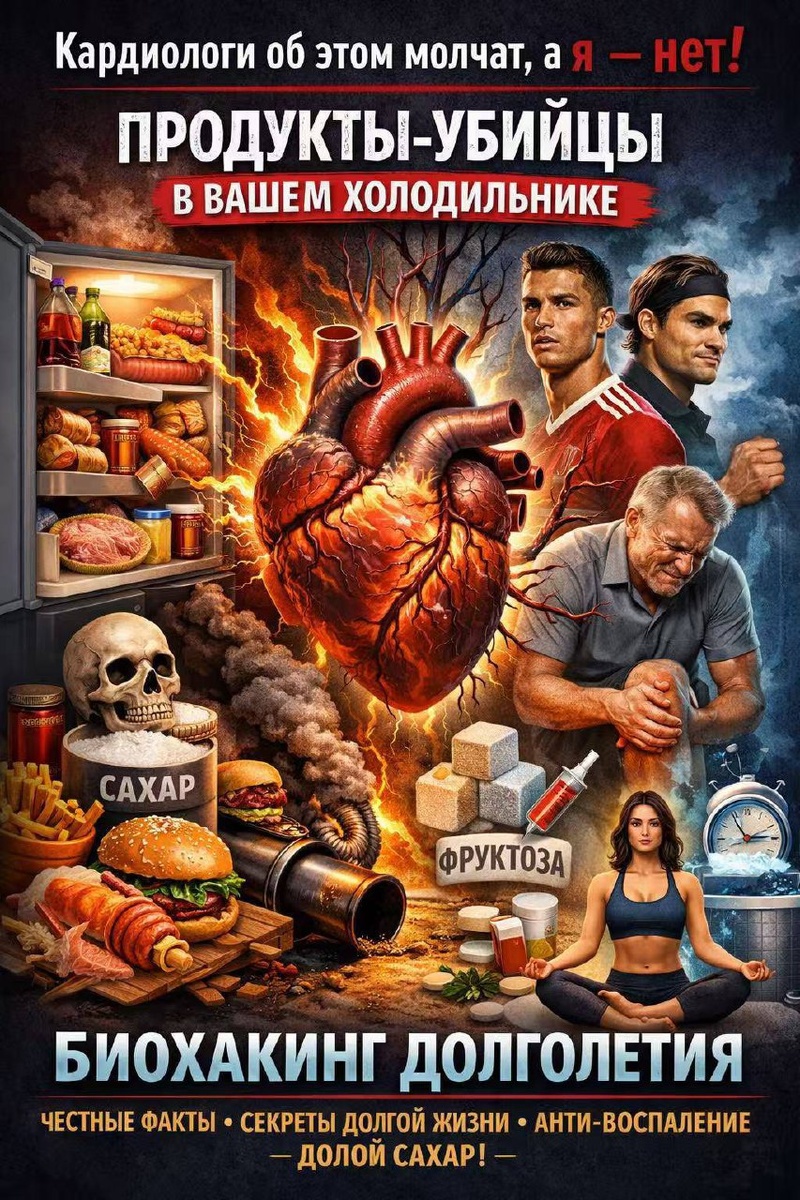Знаете, что лежит почти в каждом вашем холодильнике? Продукты-убийцы, которые маркетологи впаривают нам как «норму». Пока вы думаете, что питаетесь правильно, ваш организм отвечает системным воспалением. Свежие исследования (не те, что из рекламы йогуртов, а реальные) подтверждают: это напрямую связано с повреждением сосудов, аутоиммункой и ускоренным старением. В чем засада? Наша биология формировалась миллионы лет. А то, что мы едим сейчас, появилось жалкие 10 тысяч лет назад. Для эволюции это — мгновение. Мы буквально заправляем премиальный спорткар дешевым мазутом и удивляемся, почему он не едет и дымит. Я за честность и твердые факты. В канале «Биохакинг Долголетия» мы не занимаемся «успешным успехом», а разбираем по косточкам, как реально продлить ресурс своего тела: • Секреты 40+: Как Роналду и Федерер до сих пор показывают топ-результаты, пока другие в их возрасте уже скрипят суставами. • Износ организма: Какие продукты реально превращают ваши органы и чем их заменить без п