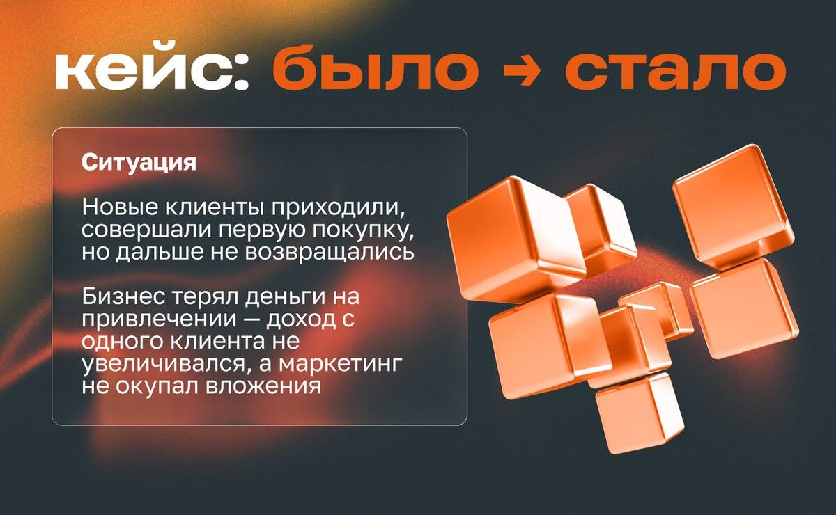 😎 Привести клиента — только половина задачи. Основная ценность для бизнеса начинается там, где появляется повторная покупка Разбираем кейс: где терялись продажи и как это исправили👆 Подписывайтесь на нас в других соцсетях: 🔹 MAX 📱 Вконтакте 📱 Дзен #АТБ_бизнес_кейсы @atbbusiness