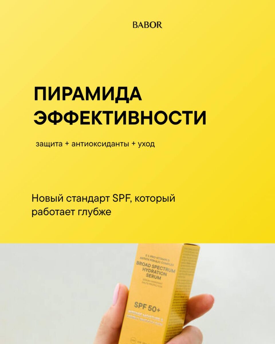 ☀️ Новый стандарт SPF — это больше, чем защита от солнца. Это система: ☀️УФ-фильтры → окклюзивы → антиоксиданты → биоактивы. Каждый уровень усиливает предыдущий, и вместе они работают глубже, чем любой одиночный крем. Листайте, чтобы увидеть, как устроена пирамида эффективности BABOR, и почему SPF сегодня становится первым шагом к качеству кожи, а не последним. Мы рассказали ключевые теоретические аспекты новой линии. В ближайшее время представим каждый продукт отдельно. #DOCTOR_BABOR_SOLAR_DEFENSE / солнцезащитная линия Вы можете познакомиться с линией на сайте и в приложении ❤️ Cолнцезащитная линия ☀️ ВК | РИТМ | ДЗЕН | ПРИЛОЖЕНИЕ