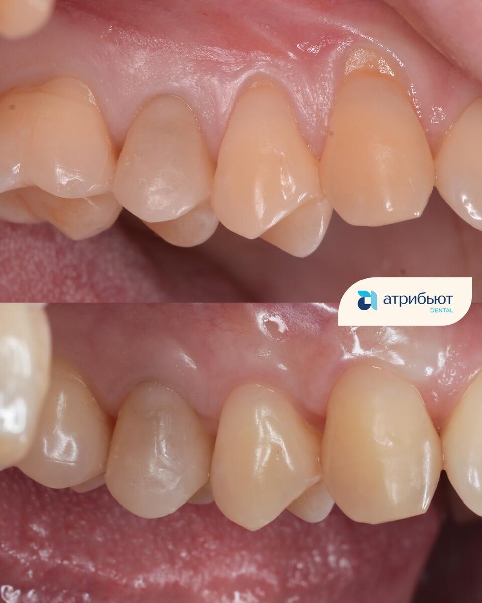 ΠΠ°ΡΠΈΠ΅Π½ΡΠΊΠ° ΠΎΠ±ΡΠ°ΡΠΈΠ»Π°ΡΡ Π² ΠΊΠ»ΠΈΠ½ΠΈΠΊΡ Ρ ΠΏΠ»Π°Π½ΠΎΠΌ Π½Π° ΠΎΡΡΠΎΠ΄ΠΎΠ½ΡΠΈΡΠ΅ΡΠΊΠΎΠ΅ Π»Π΅ΡΠ΅Π½ΠΈΠ΅, ΠΎΠ΄Π½Π°ΠΊΠΎ ΠΏΠΎΠΌΠΈΠΌΠΎ ΠΏΡΠΈΠΊΡΡΠ° Π΅Ρ Π±Π΅ΡΠΏΠΎΠΊΠΎΠΈΠ»ΠΎ ΠΎΠ³ΠΎΠ»Π΅Π½ΠΈΠ΅ ΠΊΠΎΡΠ½Π΅ΠΉ Π·ΡΠ±ΠΎΠ². Π Π΅ΡΠ΅ΡΡΠΈΠΈ Π΄Π΅Π»Π°ΡΡ Π·ΡΠ±Ρ Π²ΠΈΠ·ΡΠ°Π»ΡΠ½ΠΎ Π±ΠΎΠ»Π΅Π΅ Β«Π΄Π»ΠΈΠ½Π½ΡΠΌΠΈΒ» ΠΈ Π½Π΅ΡΠ΅Π΄ΠΊΠΎ ΡΠΎΠΏΡΠΎΠ²ΠΎΠΆΠ΄Π°ΡΡΡΡ ΠΏΠΎΠ²ΡΡΠ΅Π½Π½ΠΎΠΉ ΡΡΠ²ΡΡΠ²ΠΈΡΠ΅Π»ΡΠ½ΠΎΡΡΡΡ. β¨ ΠΠΎΡΠ»Π΅ Π΄ΠΈΠ°Π³Π½ΠΎΡΡΠΈΠΊΠΈ ΠΌΡ ΠΏΡΠΈΠ½ΡΠ»ΠΈ ΡΠ΅ΡΠ΅Π½ΠΈΠ΅ ΡΠ½Π°ΡΠ°Π»Π° ΠΏΠΎΠ΄Π³ΠΎΡΠΎΠ²ΠΈΡΡ Π·ΡΠ±Ρ ΠΊ Π΄Π°Π»ΡΠ½Π΅ΠΉΡΠ΅ΠΌΡ Π»Π΅ΡΠ΅Π½ΠΈΡ. ΠΠ° ΠΏΠ΅ΡΠ²ΠΎΠΌ ΡΡΠ°ΠΏΠ΅ ΡΠ΅ΡΠ°ΠΏΠ΅Π²Ρ Π·Π°ΠΌΠ΅Π½ΠΈΠ» ΡΡΠ°ΡΡΠ΅ ΡΠ΅ΡΡΠ°Π²ΡΠ°ΡΠΈΠΈ: Π°ΠΊΠΊΡΡΠ°ΡΠ½ΠΎ ΠΎΠ±ΡΠ°Π±ΠΎΡΠ°Π» ΠΏΠΎΡΠ°ΠΆΡΠ½Π½ΡΠ΅ ΡΡΠ°ΡΡΠΊΠΈ ΠΈ Π²ΠΎΡΡΡΠ°Π½ΠΎΠ²ΠΈΠ» ΠΊΠΎΡΠΎΠ½ΠΊΠΎΠ²ΡΡ ΡΠ°ΡΡΡ Π·ΡΠ±ΠΎΠ² ΠΊΠΎΠΌΠΏΠΎΠ·ΠΈΡΠ½ΡΠΌ ΠΌΠ°ΡΠ΅ΡΠΈΠ°Π»ΠΎΠΌ, Π½Π΅ Π·Π°ΡΡΠ°Π³ΠΈΠ²Π°Ρ ΠΏΠΎΠ²Π΅ΡΡ
