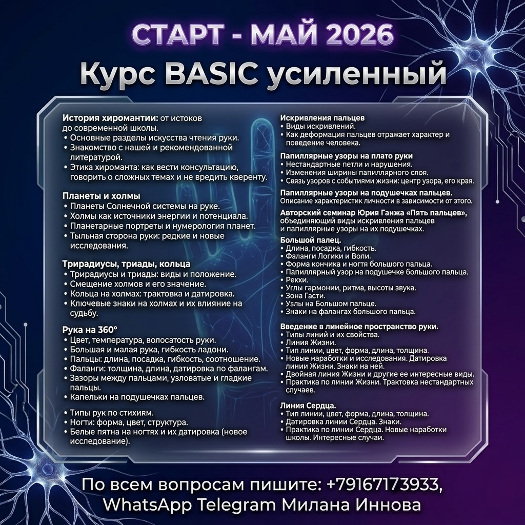 ✋ Приглашаем на обучение хиромантии в МШПХ Ю. Г. Ганжа, филиал Москва.