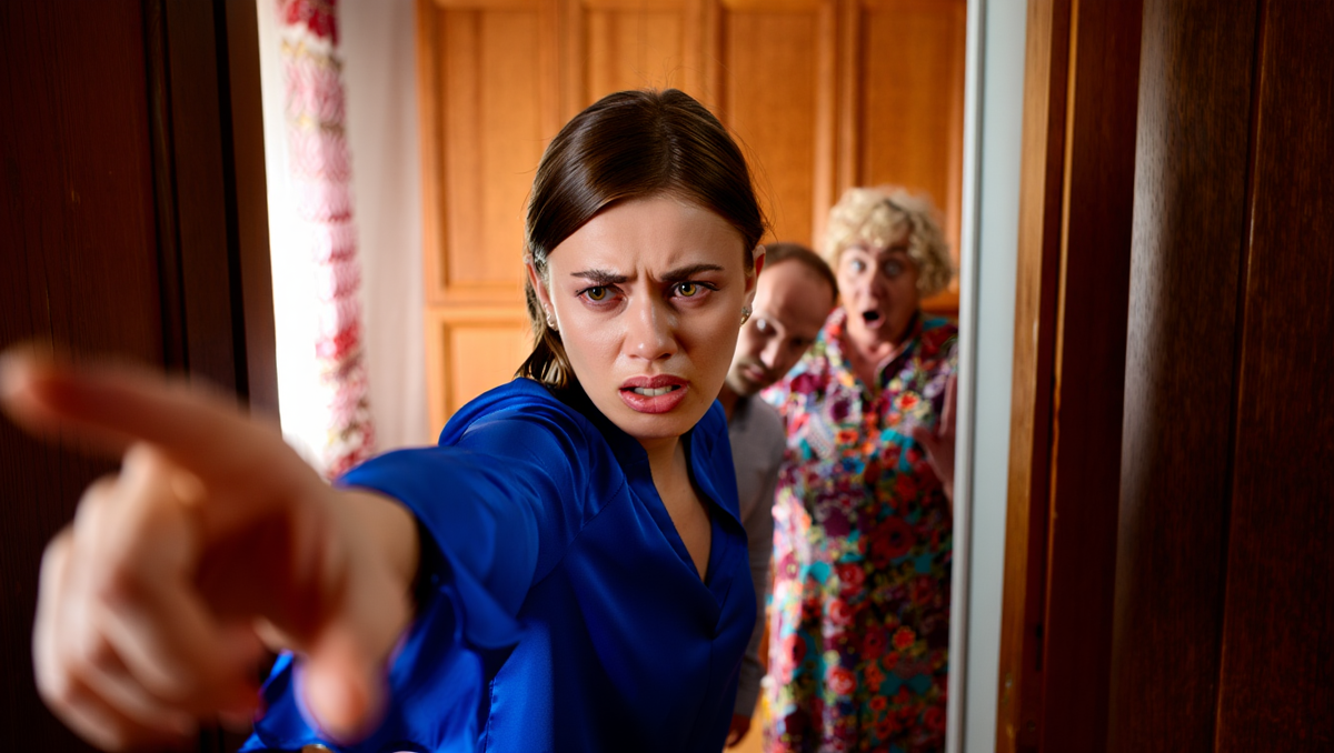 Вмешалась свекровь. Она встала, загораживая сына.