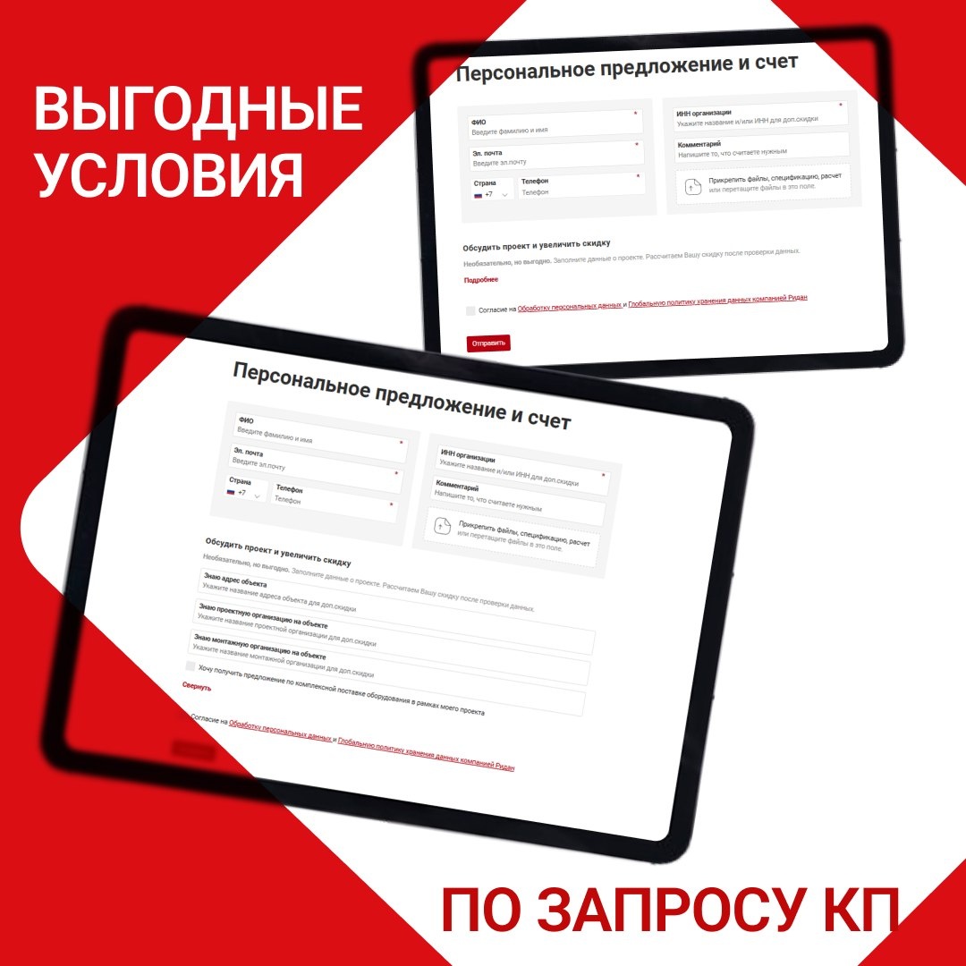 Теперь получить коммерческое предложение от «Ридан» стало быстрее и удобнее — даже для неавторизованных пользователей. На сайте форма доступна: ✏️ в карточке товара ✏️ в виджете на сайте (справа) ✏️ в корзине при оформлении заказа Если вы знаете, на какой объект требуется оборудование, — сразу указывайте это в форме. Это позволит нам быстрее обработать запрос. Два важных плюса: ✏️ сокращение времени на обработку заявки; ✏️ возможность получить дополнительную скидку, так как оборудование идёт на конкретный объект. Указывайте объект — экономьте время и получайте выгоду. 💪 Наши каналы: ВК, Дзен, MAX