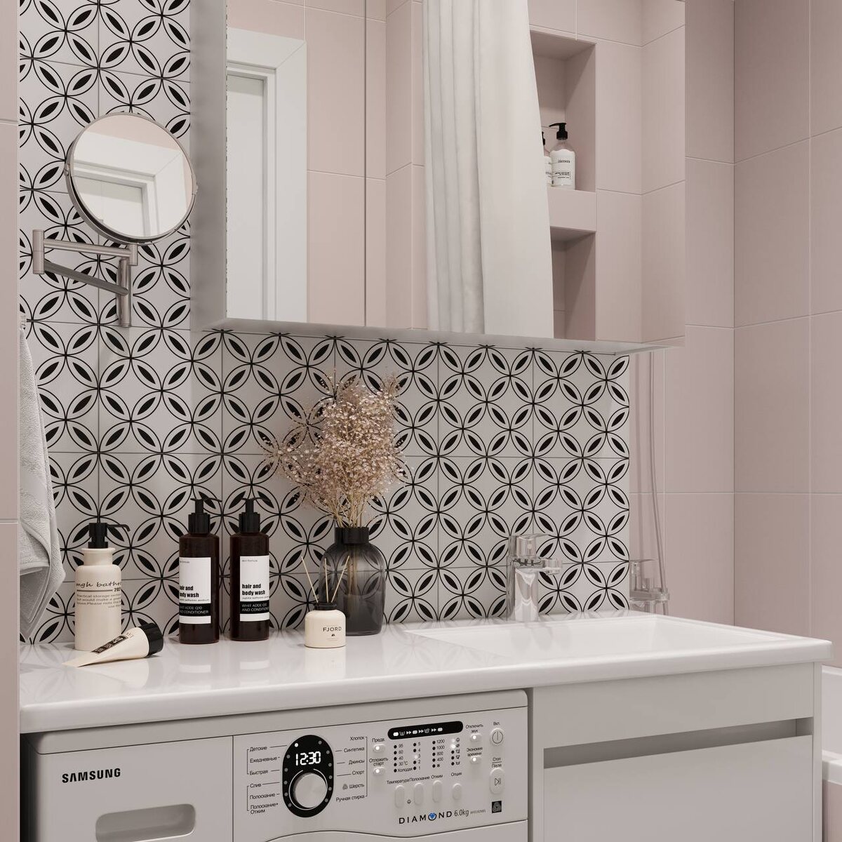 Утилитарные предметы превращаю в часть продуманной композиции: Беру готовые продукты (такое или такое мыло, например), экспериментирую с гелем для душа: в темных емкостях, серебристый. Или переливаю в дозаторы: белые, темные, цветные, в хроме На кухне отказалась от двух средств (для посуды и рук) в пользу универсальной пенки в белой упаковке. Снимаю этикетку — флакон становится нейтральным. А вы обращаете внимание на дизайн флаконов при покупке?