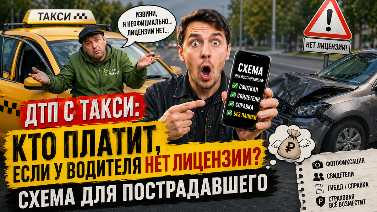 Представьте картину. Вы едете на своей ласточке, наслаждаетесь жизнью, может быть, слушаете подкаст про высокое. Как вдруг — БАЦ! — в вас въезжает яркая «Веста» с шашечками на боку. Из нее выходит уставший мужчина в «СберМаркете», разводит руками и выдает фразу, от которой у любого юриста дергается глаз:
