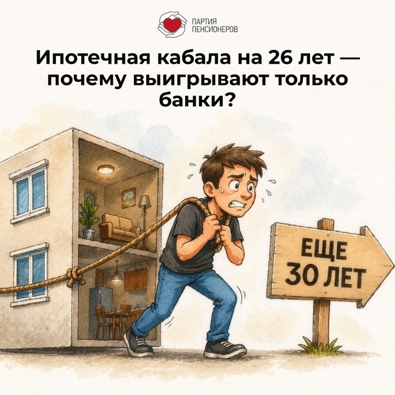 Из них 63 млрд направлены на приобретение вторичного жилья. Объемы средств сравнимы с целыми федеральными программами. Но кто реально выигрывает? Граждане вынуждены брать ипотеку не на 10–15, а на 26 лет ради меньшей ежемесячной платы. За это время даже при льготной ставке сумма долга практически удваивается. ❗️ Это ловушка: люди переплачивают, а банки богатеют. Такой подход выгоден только топ-менеджерам банков. За прошлый год – 15 топ-менеджеров ведущих российских банков заработали в качестве бонусов ровно такую же сумму – 63 млрд рублей. Партия пенсионеров требует: Деньги – на субсидируемую аренду жилья, а не на обогащение банков! Эта мера поддержит строительную отрасль, создаст рабочие места и даст шанс тем, кто остро нуждается в жилье – многодетным семьям, молодежи, людям старшего поколения, участникам СВО. Субсидированная аренда, а не вечный кредит – вот путь к решению жилищного вопроса. Цены на ипотеку неподъемны для вас? ▶ Напишите в наш чат-бот: https://max.ru/id5250071726