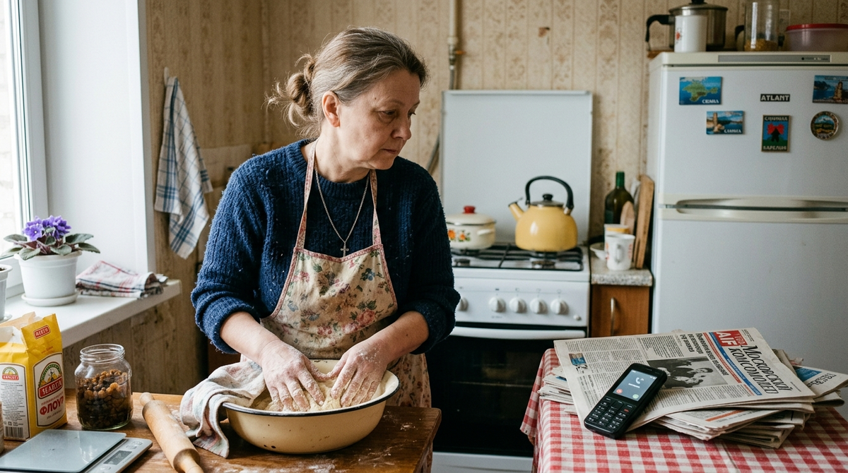 Я присыпала мукой стол, обваляла до локтей руки. Ладони помнят это движение. Первый раз я пекла куличи одна в девяносто шестом, когда Оксанке был год, а мама лежала в больнице с инфарктом. С тех пор каждую весну. Мама ушла в двенадцатом, но её рецепт у меня в голове: опара на дрожжах, молоко топлёное, желтков шесть, белков взбитых два, изюм за ночь замочить в коньяке. И никакого разрыхлителя. Никаких смесей из пакетика.