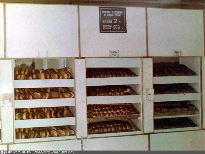 Дорогу я перешел не на перекрестке, а по кратчайшему пути – из нашего двора в паузу между машинами сразу во двор, где был хлебный, как и все остальные жители наших домов. Дошел до магазина, я раньше с родителями там уже был, все было знакомо. Хлебный отдел – единственный в то время работал по принципу самообслуживания: зашел, выбрал хлеб, заплатил, вышел. Так всё и сделал. Просто и буднично. Очередь к кассиру была 2-3 человека. После этого покупка хлеба целиком и полностью легла на меня. Родители оставляли деньги и задание на обязательные покупки, на сдачу иногда разрешали купить вкусняшек: пирожок с повидлом за 5 копеек, бублик с маком за 5 копеек, конфет «дунькина радость», но я предпочитал «арахис в сахаре» (15 коп. за 100 г).