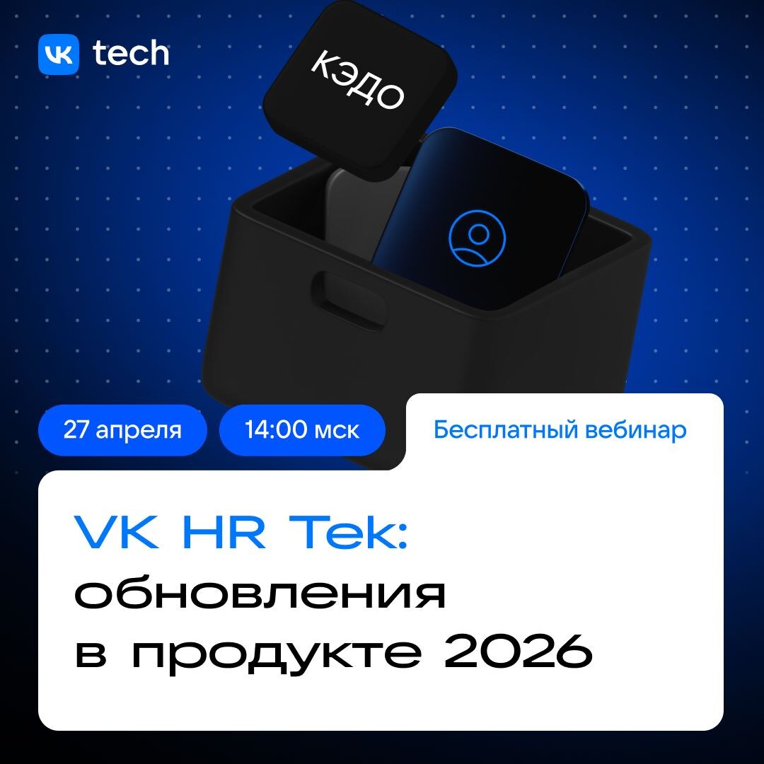 27 апреля мы проведем вебинар, где покажем обновления платформы. Встреча будет особенно полезна, если вы пока используете не все возможности VK HR Tek – мы расскажем, как расширить сценарии кадровой автоматизации. В программе: 💎новая главная страница и навигация по бизнес-процессам 💎данные штатного расписания: ставки по плану, занято и свободно по подразделениям 💎рассылка табелей руководителям и добавление заместителей на периоды отсутствий 💎сообщества, лента публикаций, главные новости 💎аналитика по новостям, ЛНА, заявкам и общей работе в системе 💎графики работы в КЭДО, групповые командировки, выгрузка отчётов по ЛНА в Excel 💎пересечение отсутствий и согласование графика отпусков функциональными руководителями 💎планы: база знаний, интеграция с тревел-системами, иерархия ЛНА, динамические лимиты отпусков 🔹Спикер — Александра Евменова, руководитель группы онбординга VK HR Tek, VK Tech. 🔹 Когда: 27 апреля в 14:00 (МСК), онлайн, бесплатно. 🔹 Регистрация.