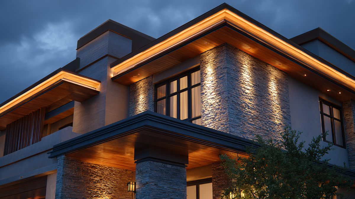 - LED-светильники. Сегодня это стандарт для уличного освещения частного дома. Они энергоэффективны (экономят до 80% электричества), долговечны (работают до 50 000 часов) и позволяют гибко управлять яркостью (диммирование) и цветом.
