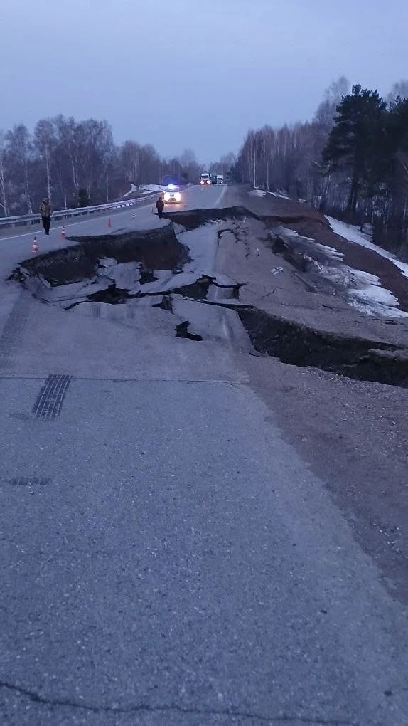 😨Из-за обрушения дорожного полотна перекрыта трасса между Бийском и Новокузнецком