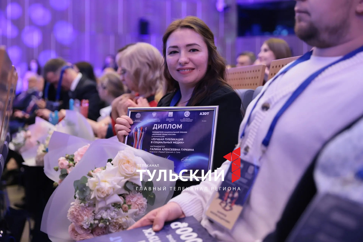 Шеф-редактор "Первого Тульского" Галина Гуркина получила Первую национальную премию "Большая семья России". В прошлом году учредить такой конкурс для журналистов предложили на Всероссийский демографической конференции. В этом году на конкурс прислали более 350 работ со всей России. Галина Гуркина стала победителем в номинации "Лучшая публикация в социальных медиа". Она подготовила серию роликов про многодетную семьи нашего региона. Эти ролики не только показали в эфире телеканала, но и выложили в группе "Первого Тульского" в социальной сети "ВКонтакте". Некоторые ролики набрали десятки тысяч просмотров. Диплом победителя, статуэтку и сертификат Галине вручили Зампред Правительства России Татьяна Голикова, Полномочный представитель Президента России в ЦФО Игорь Щёголев и генеральный директор "ТАСС" Андрей Кондрашов. Конкурс "Большая семья России" прошел при поддержке Правительства РФ, Полномочного представителя Президента в ЦФО, Института демографической политики Менделеева и ГК "Азот".